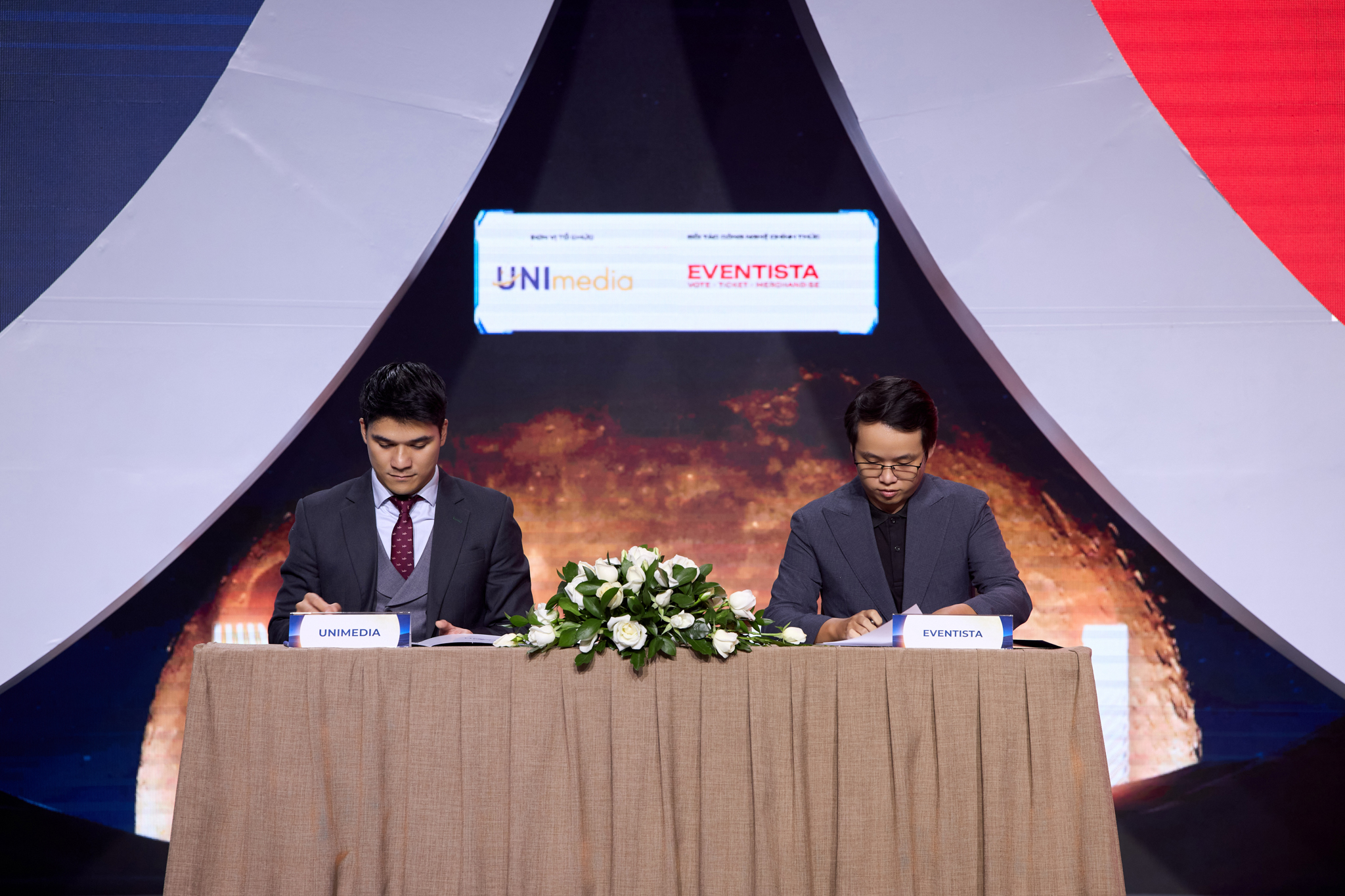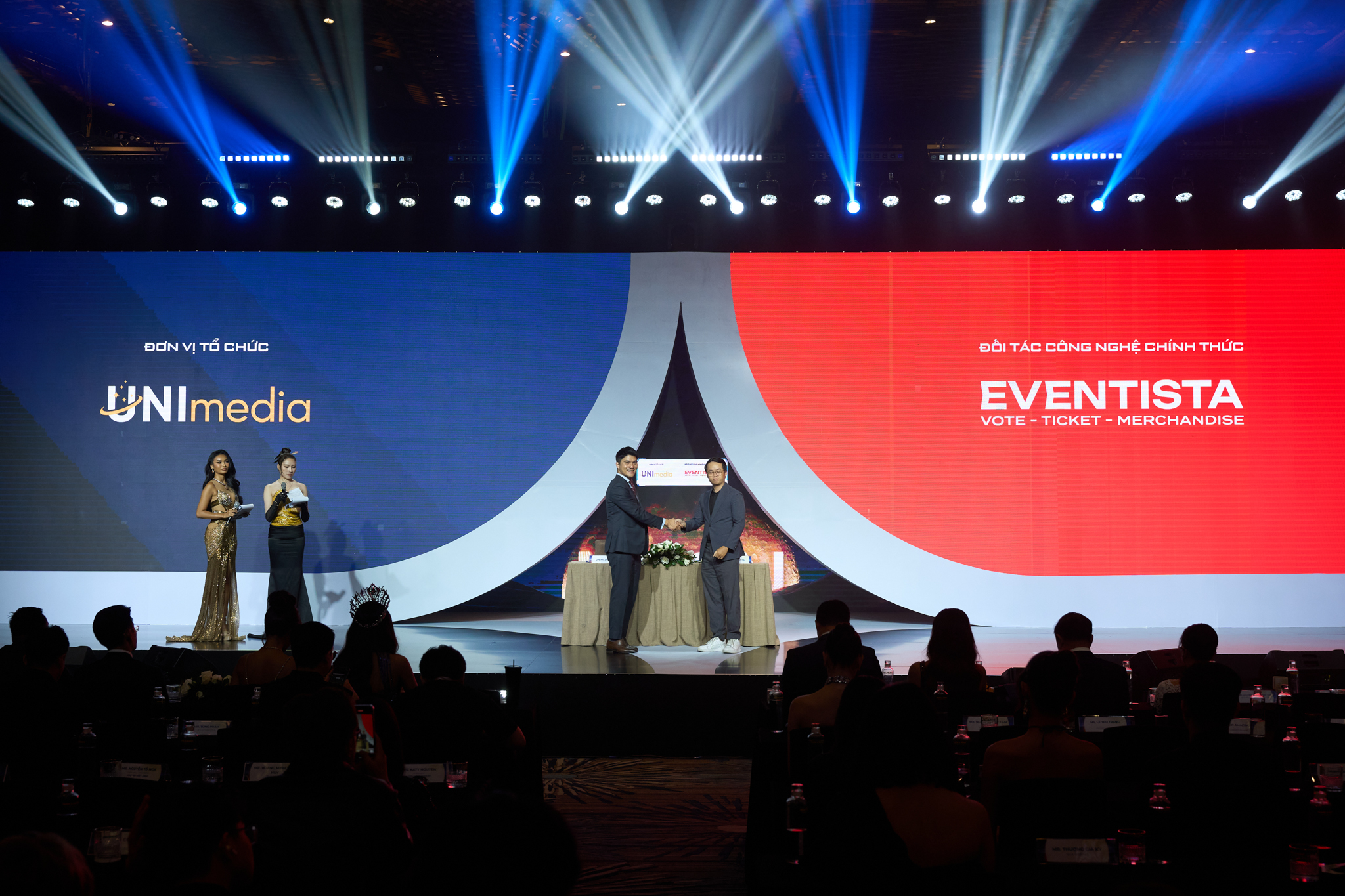 CEO UNIMEDIA và CEO Eventista thực hiện ký kết trực tiếp với vai trò Eventista là Đối tác Công nghệ chính thức – Cổng bình chọn trực tuyến cho Miss Cosmo Việt Nam 2025